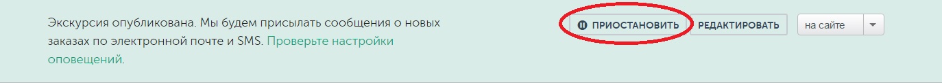 Иногда случается, что вы на какое-то время уезжаете из города, очень заняты на основной работе или по каким-то другим причинам не можете проводить экскурсии. Пожалуйста, в таких случаях приостанавливайте ваши экскурсии.