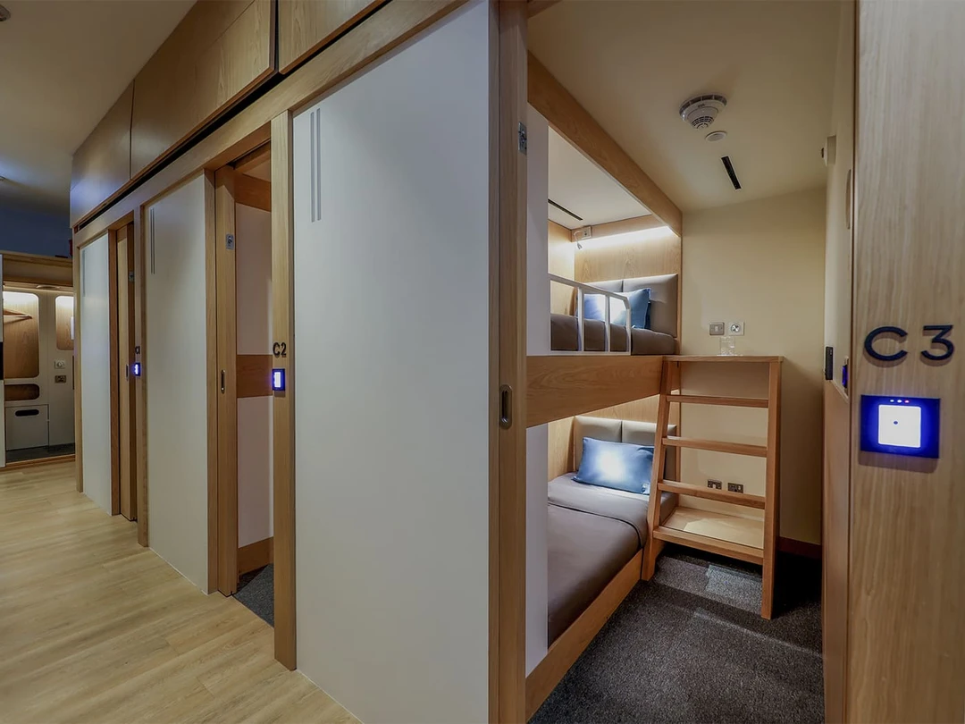 Помимо этого, для гостей доступны два капсульных отеля. В них действует почасовая оплата, минимальное время нахождения здесь — два часа. Гостям доступны различные варианты: от одноместных капсул до двухъярусных номеров и семейных «кают» с полноценной двуспальной кроватью. Также в отелях есть душевые, где можно освежиться перед следующим рейсом. Sleepover North Node находится в терминале C, Sleepover South Node — ближе к выходам A и B.