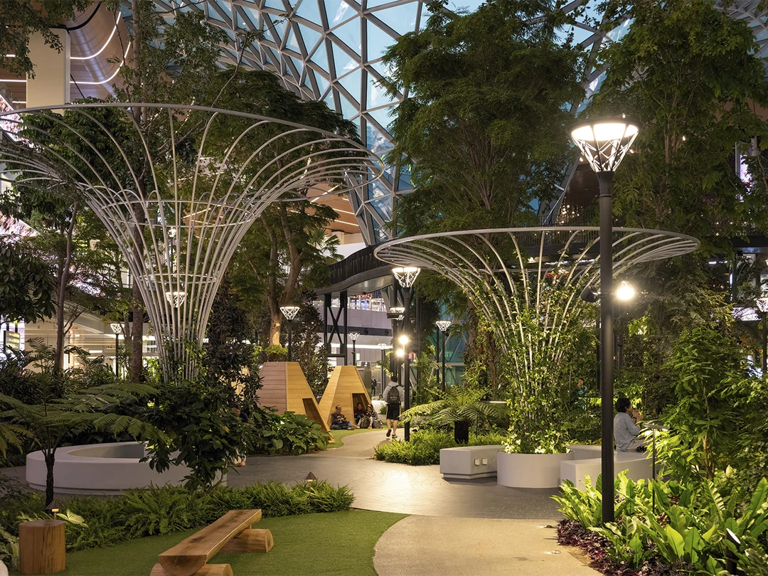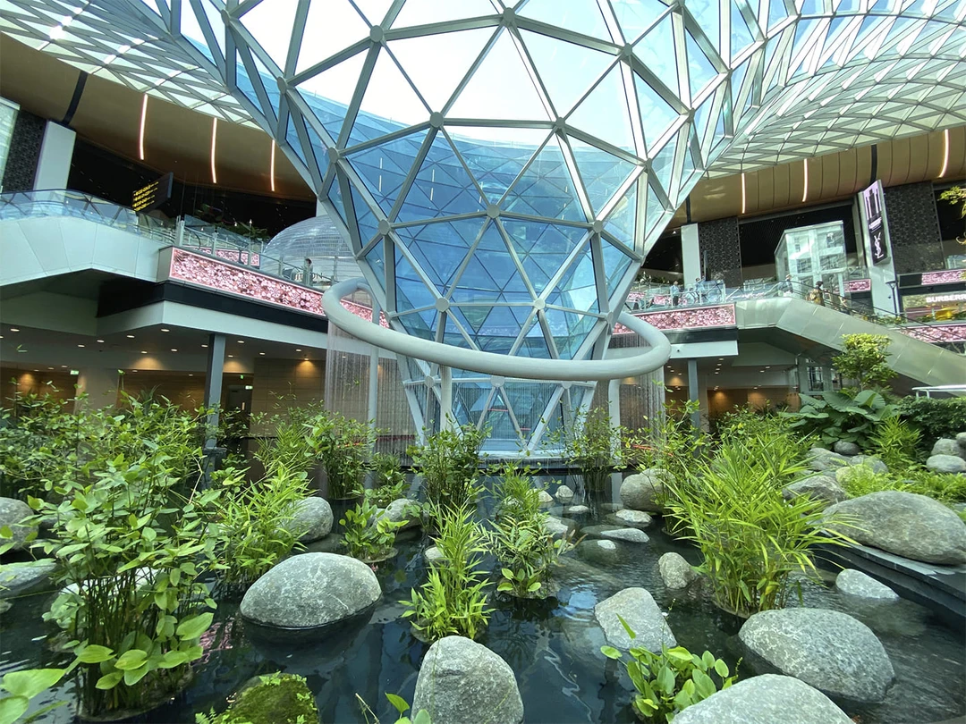 В самом сердце аэропорта раскинулся настоящий зелёный оазис Orchard. Парк площадью 6000 м² словно переносит гостей внутрь дождевого леса: здесь произрастают более 300 деревьев и свыше 25 тысяч растений и кустарников со всего мира. В центре парка расположены пруд с водными растениями и искусственный водопад. Над садом возвышается уникальная крыша в виде сетчатой оболочки — сквозь неё льётся естественный свет, а специальное стекло мягко фильтрует солнечные лучи.