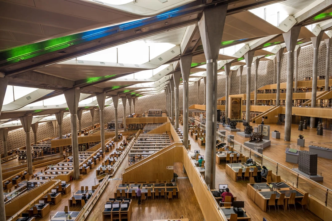 Кроме основной библиотеки на территории находится комплекс из четырёх музеев: древностей, рукописей, музея Садата и истории науки, а также художественные галереи, планетарий и студия реставрации. В одном из залов — Culturama — проходит панорамное шоу об истории Египта.