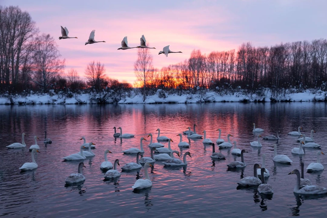 С ноября по март здесь зимуют лебеди, привлекая не только орнитологов и бёрдвотчеров, но и обычных путешественников. Для удобства фотографов и наблюдателей за птицами оборудованы смотровые площадки. Кроме лебедей, тут можно увидеть диких уток и самого крупного представителя уток-крохалей — большого крохаля.