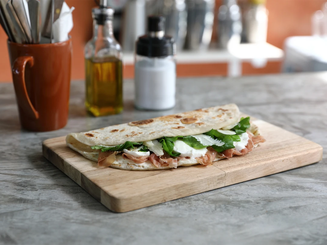 Пьядина (piadina) — тонкая лепёшка из пшеничной муки. В ресторанах её подают в качестве хлеба к мясным или овощным блюдам, а в фастфудных заведениях пьядина — основа для вкусных сэндвичей.