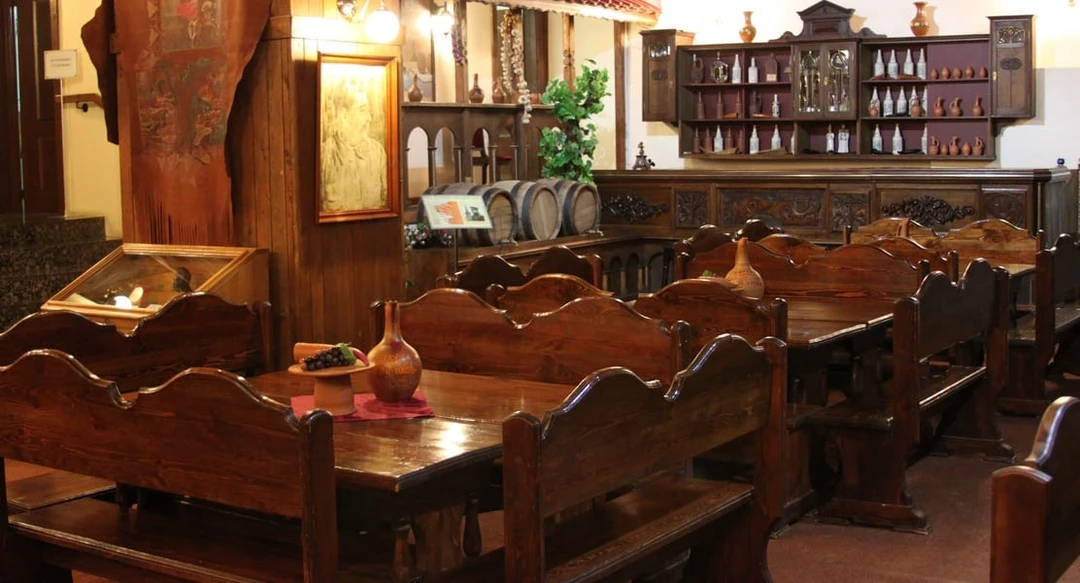 - Столовая в грузинском стиле, что должно было понравиться родившемуся в Гори Сталину. Там и сегодня можно увидеть посуду, привезённую из его родного города.