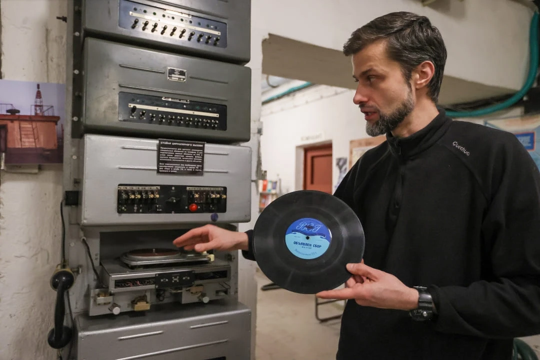Самая большая часть выставки посвящена убежищам и системам специальной связи. Попасть сюда можно через тамбур‑шлюз со стальными герметичными дверьми. В зале создана атмосфера бункера, в котором во время атомной войны могли бы укрыться люди. Главная зона здесь — пункт связи, где можно увидеть подлинные приборы с правительственных спецобъектов. Один из них — аппарат, похожий на небольшой шкаф с проигрывателем. Устройство делало автоматический обзвон чиновников, ответственных за подготовку убежищ для приёма населения. Для этого в его память заранее заносились нужные номера и записанное сообщение. В приборе использовалась виниловая пластинка: она считалась самым надёжным носителем информации.