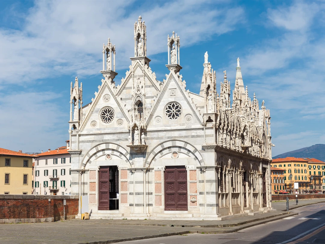 За пределами знаменитой площади вас ждёт университетский город с многовековой историей. Прогуляйтесь по набережной реки Арно с её элегантными дворцами, загляните в церковь Санта‑Мария-делла‑Спина — шедевр готической архитектуры, или посетите музей Палаццо‑Реале, чтобы познакомиться с богатой историей Пизы. А почувствовать местный колорит предлагаем на рынке Сан‑Омобоно, где подают панини с жареной свининой — любимую еду студентов.