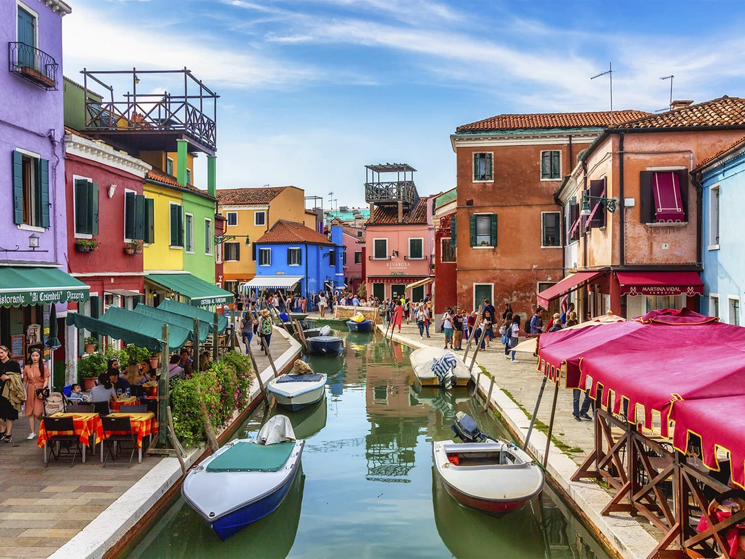 Очарование Венеции раскрывается и на островах лагуны. Например, на Мурано уже семь столетий живут традиции стеклодувного искусства, за которым можно наблюдать в мастерских. А на Бурано словно попадаешь в декорацию к сказке: яркие, разноцветные домики — лимонные, голубые, мятные, коралловые — отражаются в воде каналов. Поездка к этим островам дарит иное восприятие венецианской жизни — более размеренной и спокойной, чем на главной части города.