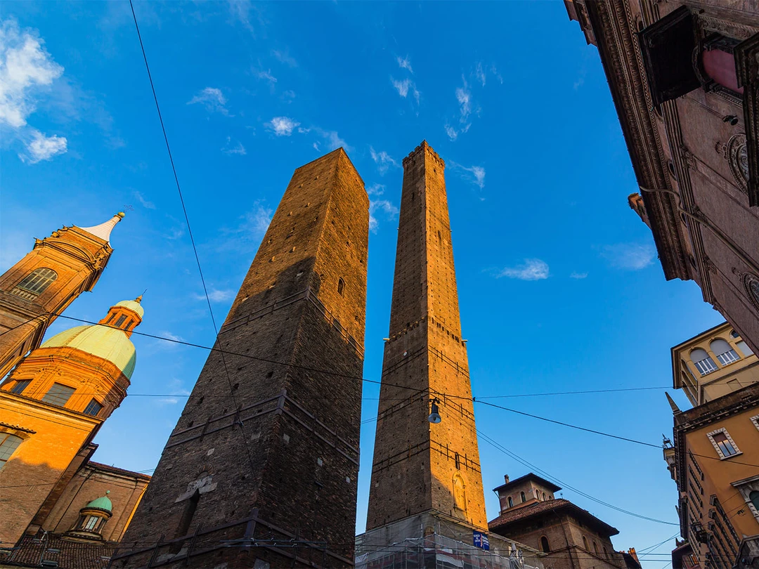 Этот город привлекает своим необычным архитектурным наследием. Здесь находится старейший университет Европы, основанный в 1088 году, исторические здания которого разбросаны по всей Болонье. В центре на многие километры тянутся внесённые в список ЮНЕСКО портики, которые защищают жителей и путешественников от любой погоды. А среди узких улиц, усеянных этими аркадами, скрываются великолепные средневековые площади, включая Пьяцца Маджоре с базиликой Сан‑Петронио и многочисленными дворцами и падающие башни Азинелли и Гаризенда.