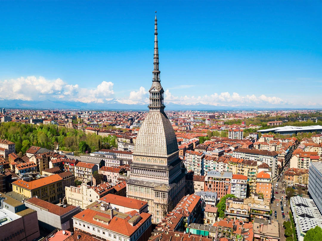 Первая столица объединённой Италии впечатляет своей элегантной строгостью и гармонией улиц. Архитектурная доминанта города — башня Моле Антонеллиана конца XIX века, самое высокое кирпичное здание в Европе. Сейчас здесь расположен музей кино, а с крыши можно полюбоваться панорамой Турина. Неподалёку находится площадь Кастелло, где соседствуют Королевский дворец и палаццо Мадама — великолепный архитектурный памятник, вобравший в себя черты разных эпох: от древнеримских ворот до барочного фасада.