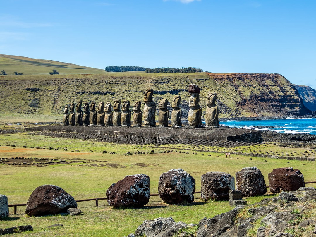 Аху Тонгарики — самый впечатляющий археологический комплекс Рапа‑Нуи и крупнейшая платформа с восстановленными моаи. На ней выстроены пятнадцать статуй, обращённых к внутренней части острова. Этот ансамбль был разрушен цунами в XX веке и полностью восстановлен в 1990‑х годах.