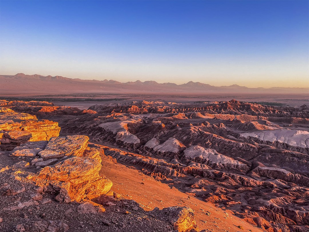 Пустыня Атакама занимает север Чили и считается одним из самых засушливых мест на планете. В некоторых районах осадки могут не выпадать годами, а ландшафт выглядит почти инопланетным: солончаки, вулканические конусы, каменные плато и высохшие русла рек. При этом Атакама — не безжизненное пространство. Высота над уровнем моря, близость Анд и резкие перепады температуры формируют особую экосистему, где соседствуют солёные лагуны, гейзеры и редкая высокогорная растительность. Вот несколько популярных локаций в районе Атакамы.