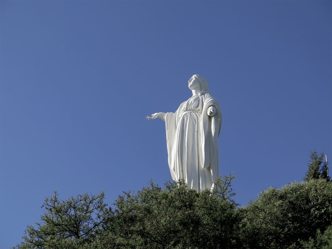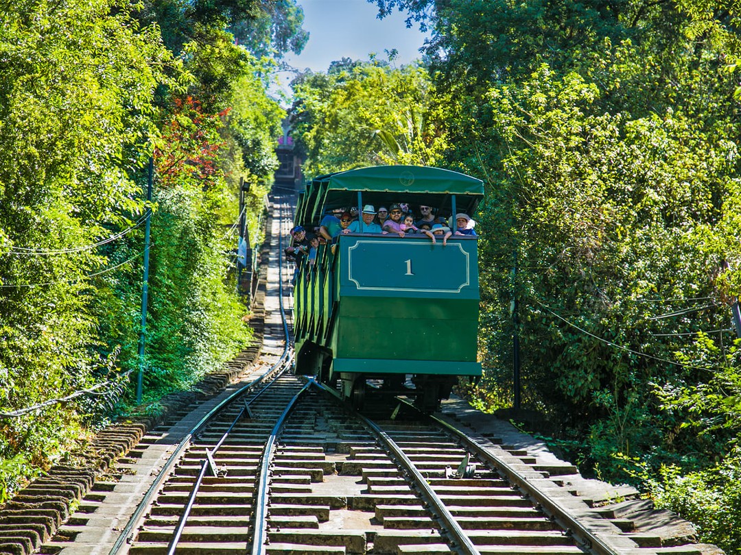 Серро Сан‑Кристобаль входит в состав городского парка «Метрополитано» и считается главной обзорной точкой столицы. Подняться наверх можно на историческом фуникулёре, который сам по себе стал частью городской истории. Он был открыт в 1925 году, в период активного благоустройства холма и создания парковой зоны. Деревянные вагончики поднимаются по крутому склону под характерный металлический скрип, а маршрут проходит через туннель и зелёные участки парка.