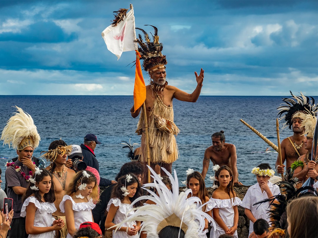 Заселение Рапа‑Нуи началось примерно в XIII веке, когда сюда прибыли полинезийские мореплаватели. На острове сложилось общество с собственной религией и развитой иерархией. Главным материальным наследием той эпохи стали моаи — монументальные статуи из вулканического туфа высотой до 10 метров и весом более 70 тонн. Большинство из них обращены к внутренней части острова, к бывшим поселениям, поскольку олицетворяли предков и считались их покровителями.