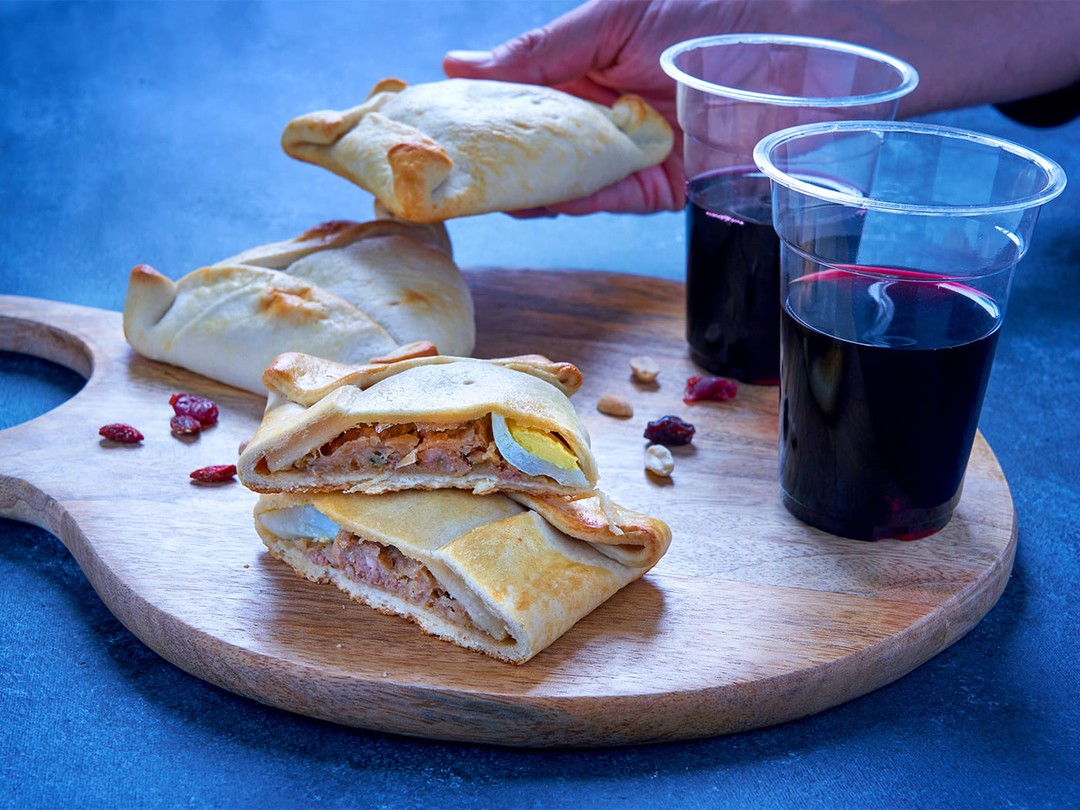 - Эмпанада пино. Традиционный пирожок с начинкой из говядины, лука, яйца и изюма. Снаружи тесто слегка хрустящее, внутри — сочная мясная начинка с характерным балансом солёного и сладковатого вкуса