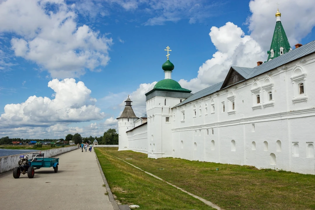 Оценить величие этого памятника архитектуры XVII века можно и на расстоянии. Особенно красивый вид на монастырь открывается с борта теплохода — во время речной прогулки по Волге.