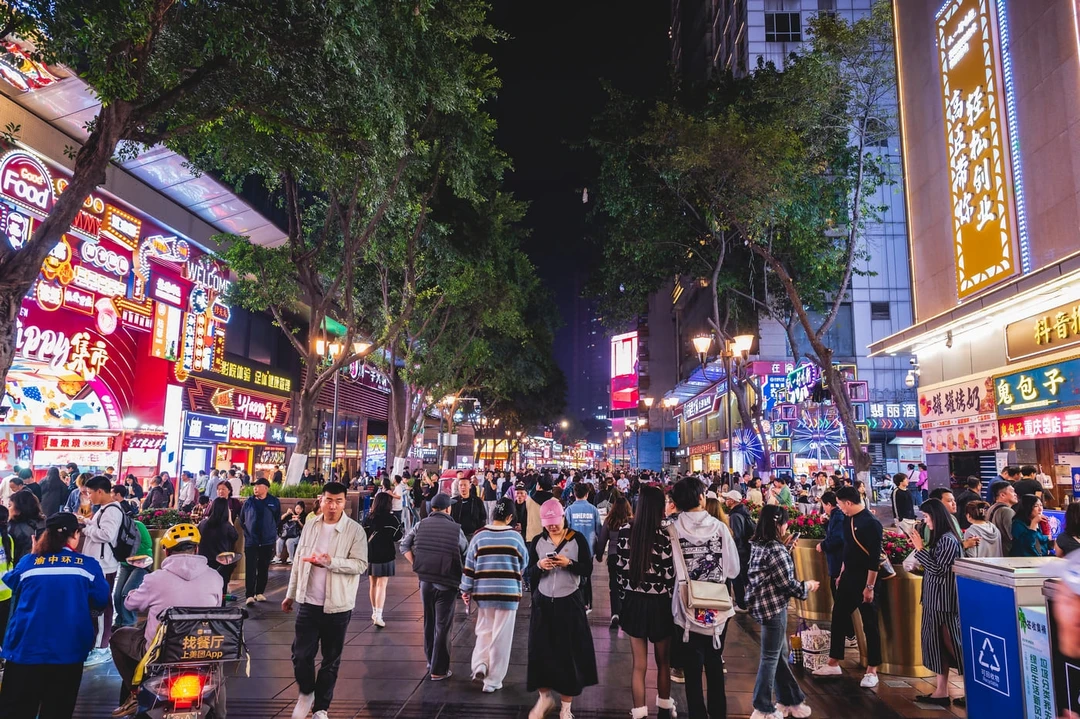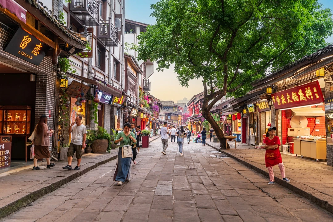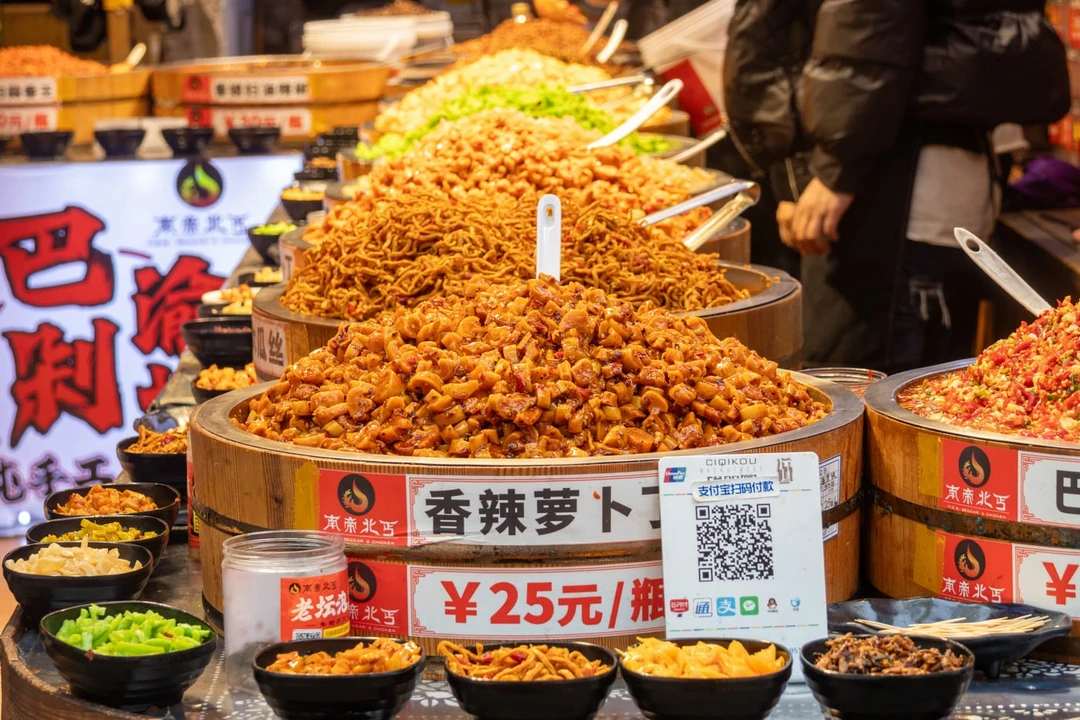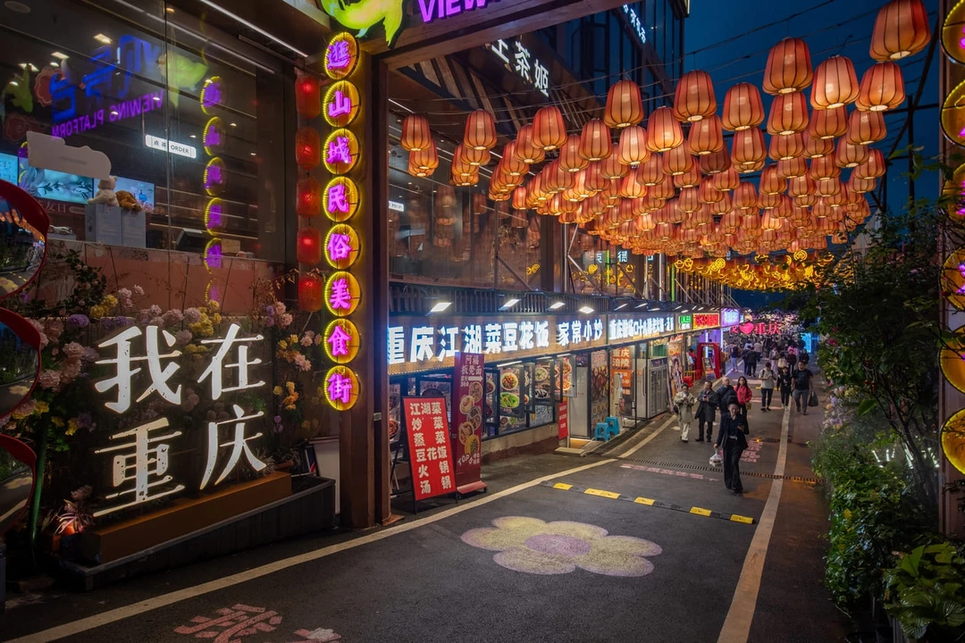Цзефанбэй — это ещё и гастрономический центр Чунцина. На улице Баи можно найти огненную лапшу сяомянь, ароматные пельмени чаошоу и, конечно, культовый чунцинский хот‑пот. Это идеальное место, чтобы окунуться в мир местной кухни.