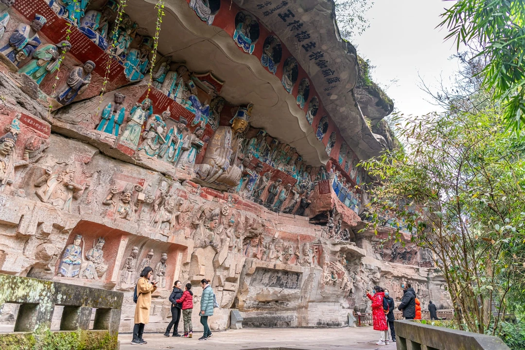 Один из величайших памятников пещерного искусства Китая в 160 километрах от центра Чунцина. Этот комплекс объединяет под открытым небом более 10 тысяч скульптур, высеченных в скалах с IX по XIII век. Необычность рельефов Дацзу — в гармоничном соседстве сцен и фигур из трёх религий: буддизма, даосизма и конфуцианства.