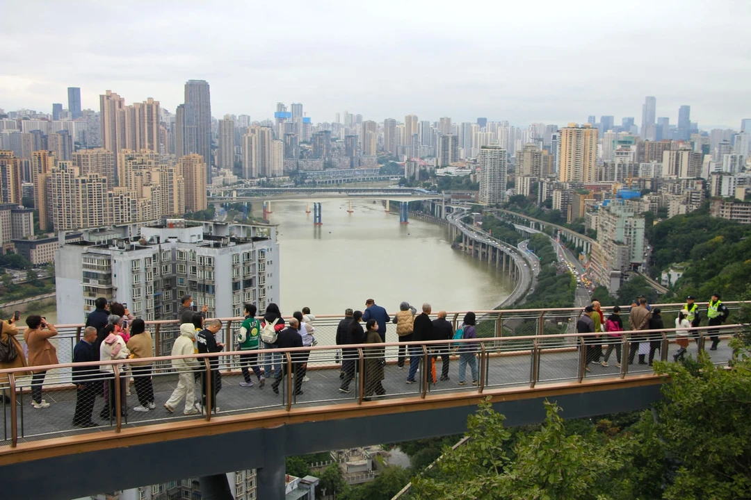 Комплекс особенно красив после наступления темноты, когда тысячи огней подсвечивают его ярусы. Внутри — настоящий вертикальный город: на разных уровнях расположены лавки с местными изделиями, ремесленные мастерские, чайные и точки с уличной едой. На самом верху находится смотровая площадка, откуда открывается живописный вид на слияние рек Янцзы и Цзялинцзян.