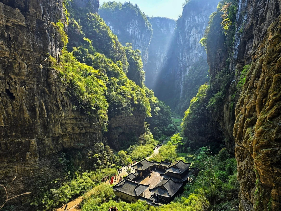 Эта охраняемая территория примерно в 150 километрах от Чунцина известна своим необычным карстовым ландшафтом: глубокими каньонами, скальными образованиями и извилистыми подземными пещерами.