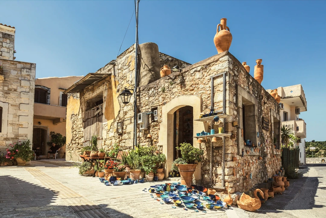 Отличным сувениром будет керамика — тарелочки или кувшины с традиционными критскими узорами, которые напомнят о солнечных днях на греческом острове.