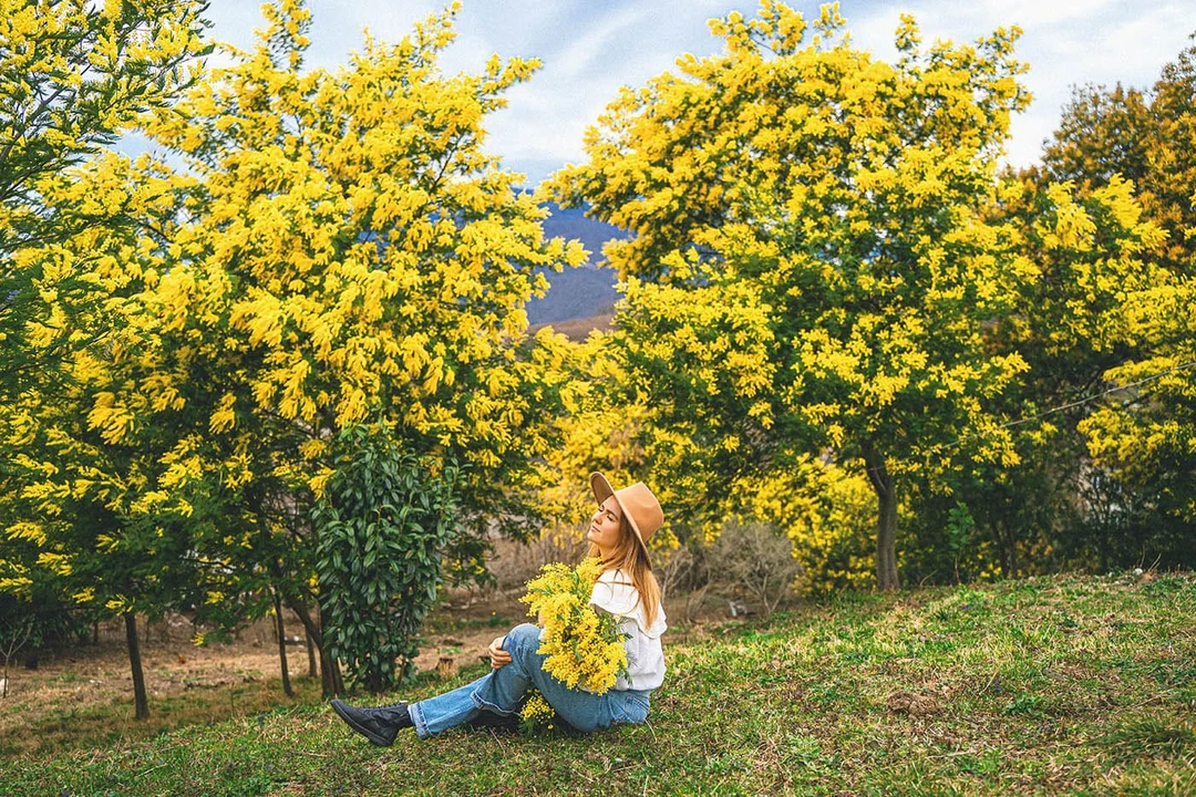 Хотя мимоза растёт и в России, к праздникам цветы привозят из соседней Абхазии. Там в сезон цветения яркие деревья украшают обочины дорог, городские улицы и местные парки. Искать специально мимозу не нужно: достаточно просто въехать в страну и не забывать смотреть по сторонам.