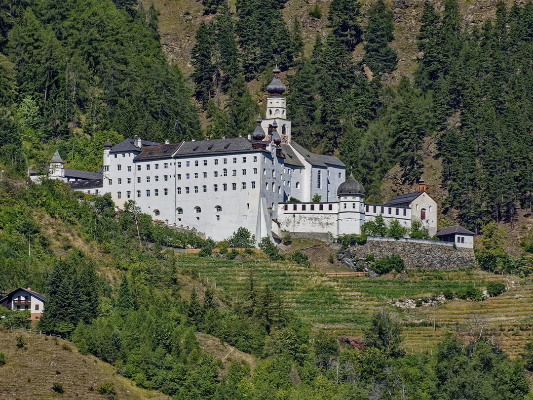 А в 60 километрах от города можно увидеть самый высокогорный действующий бенедиктинский монастырь Европы на высоте около 1340 метров над уровнем моря. Аббатство Монте Мария основали в 1150 году, а монашеская жизнь здесь никогда не прерывалась, несмотря на пожары, разорения и перестройки. Часть аббатства открыта для посещения: можно побывать в монастырских церквях и спуститься в крипту, чтобы осмотреть фрески XI–XII веков — одни из самых ранних и лучше всего сохранившихся в Альпах.