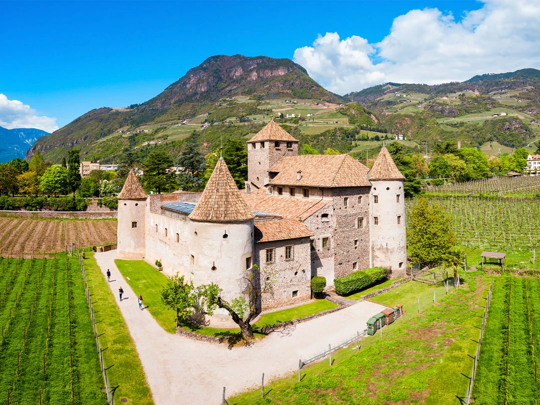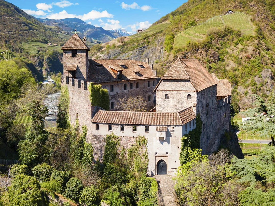 В 90 километрах от Больцано находится один из наиболее хорошо сохранившихся средневековых замков на северо‑востоке Италии. Его возвели в XIII веке для контроля долины Аурина — важного альпийского маршрута, но со временем крепость превратилась в родовую резиденцию тирольского рода фон Тауферс. Сегодня замок работает как музей. Внутри — более 60 помещений: рыцарские залы, жилые покои, часовня, кухни, спальни с подлинной мебелью. В интерьерах сохранились фрески XV–XVI веков, резные деревянные двери, камины и настенные покрытия из расписанной ткани и кожи. Такие «обои» в Средние века использовали одновременно для утепления помещений и украшения стен.