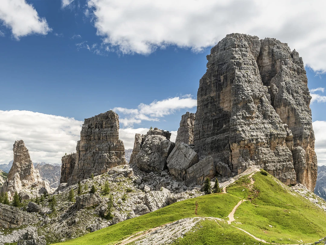 - Чинкве‑Торри. Группа скальных башен недалеко от Кортины‑д’Ампеццо. Во время войны они служили естественной крепостью. Между скалами до сих пор видны окопы, блиндажи и артиллерийские позиции