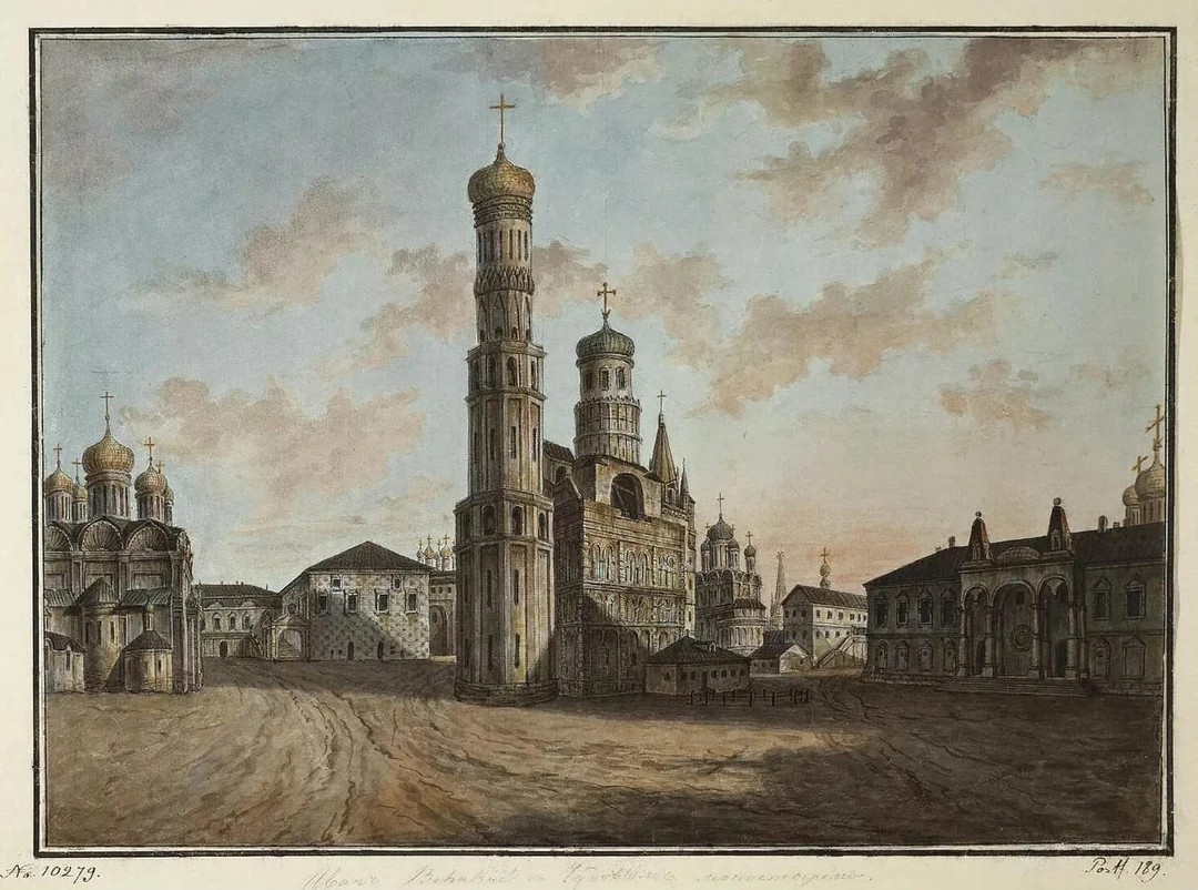 В начале 1500‑х возвели огромную колокольню под руководством итальянского архитектора Бона Фрязина. Её украсили фигурными карнизами и кокошниками, а под самым куполом — золочёной надписью, свидетельствующей о строительстве ещё одного яруса, уже при князе Борисе Годунове. Высота колокольни — 81 метр. Она получилась настолько прочной, что когда наполеоновские войска взорвали весь ансамбль, колокольня единственная уцелела. Звонницу и Филаретову пристройку восстановили в 1814–1815 годах.