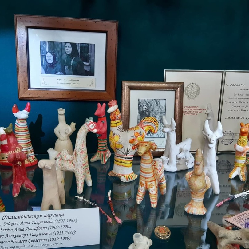 Экспозиция, посвящённая местному народному промыслу (деревня Филимоново — один из древнейших гончарных центров страны — расположена в восьми километрах от Одоева). Кстати, жёлто‑красно-зелёными глиняными фигурками можно не только любоваться: записавшись на мастер‑класс, вы изготовите их собственными руками.