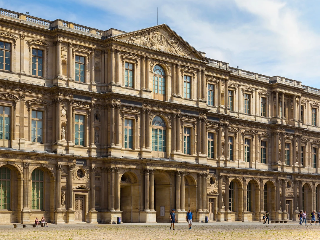 История дворца, в котором располагается один из самых знаменитых музеев мира, началась в 1546 году. Тогда король Франциск I задумал построить новую резиденцию в стиле ренессанс на фундаменте военной крепости Лувр XII века. Строительство дворца монарх доверил придворному архитектору Пьеру Леско. Однако поселиться здесь король так и не успел: его жизнь оборвалась в 1547‑м. Здание было достроено уже после смерти Франциска. Сегодня оно известно как крыло Леско и составляет лишь малую часть ансамбля Лувра.