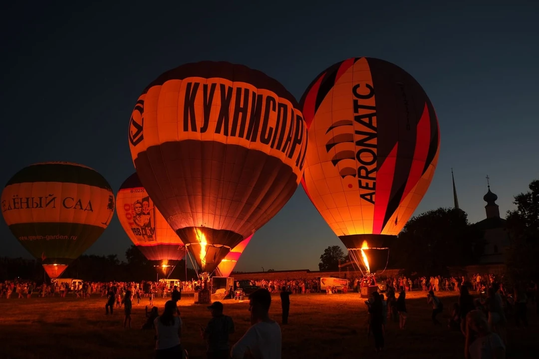 При этом для гостей на земле готовят развлекательную программу: концерты, ярмарки с изделиями от локальных мастеров и мастер‑классы по росписи моделей аэростатов и гипсовых фигур. А после заката гостей ждёт самая эффектная часть — свечение аэростата, когда наполненные шары стоят на земле и красиво подсвечиваются.