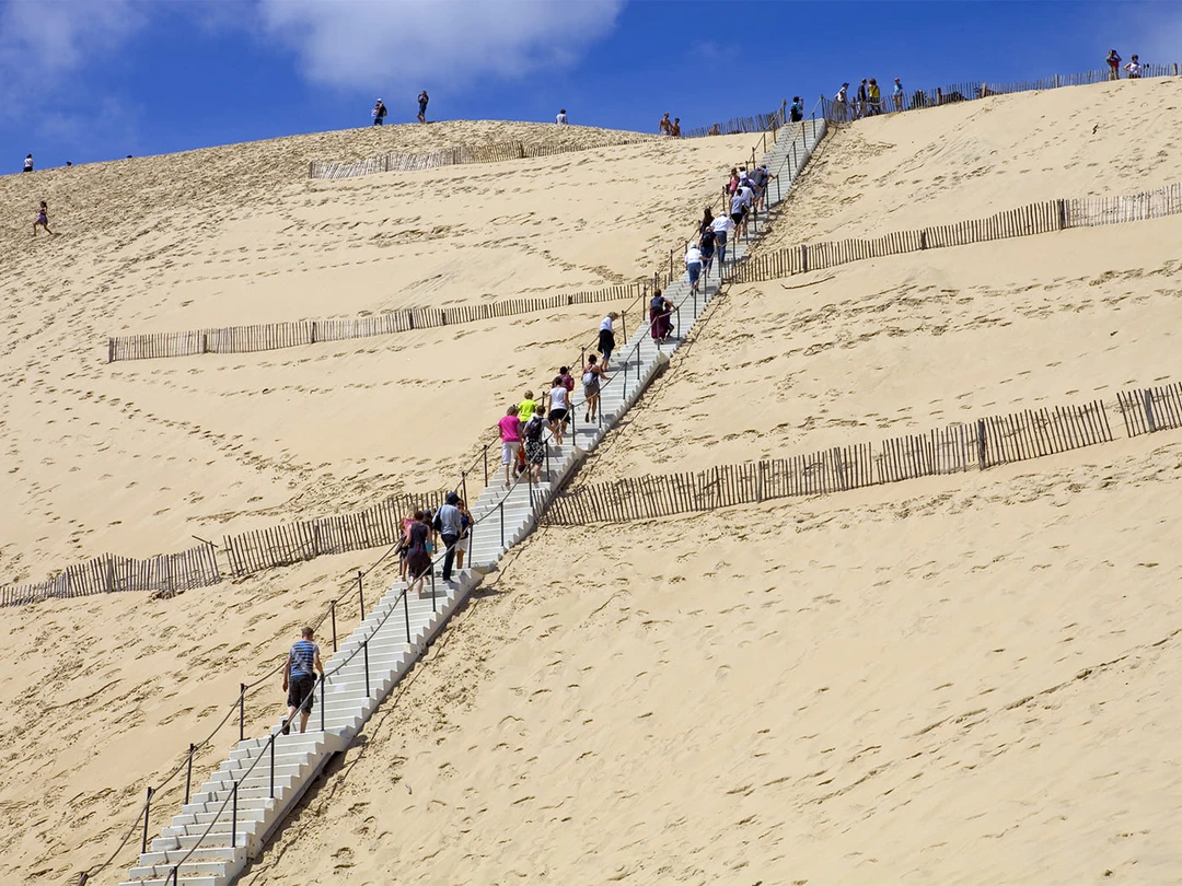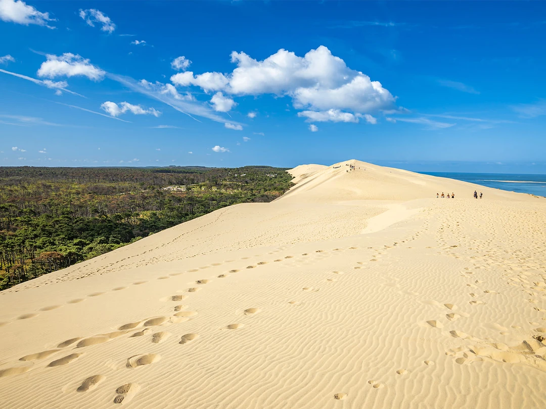 Самая высокая песчаная дюна Европы находится недалеко от Аркашона на Атлантическом побережье Франции. Её вершина поднимается почти на 115 метров над уровнем моря, а длина песчаного гребня тянется более чем на три километра. Отсюда видно всё — бескрайний океан, сосновые леса Ландов и серебристые пески побережья.