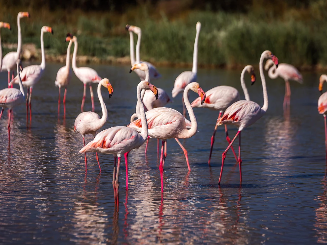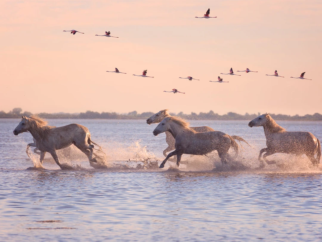 Один из самых самобытных природных регионов Франции. Камарг расположен на юге страны, между двумя рукавами Роны, и представляет собой огромную дельту, где пресные воды реки встречаются с солёным Средиземным морем. Пейзаж здесь особенный: зеркальные солончаки, лагуны, тростниковые заросли и стаи розовых фламинго создают почти нереальную картину.