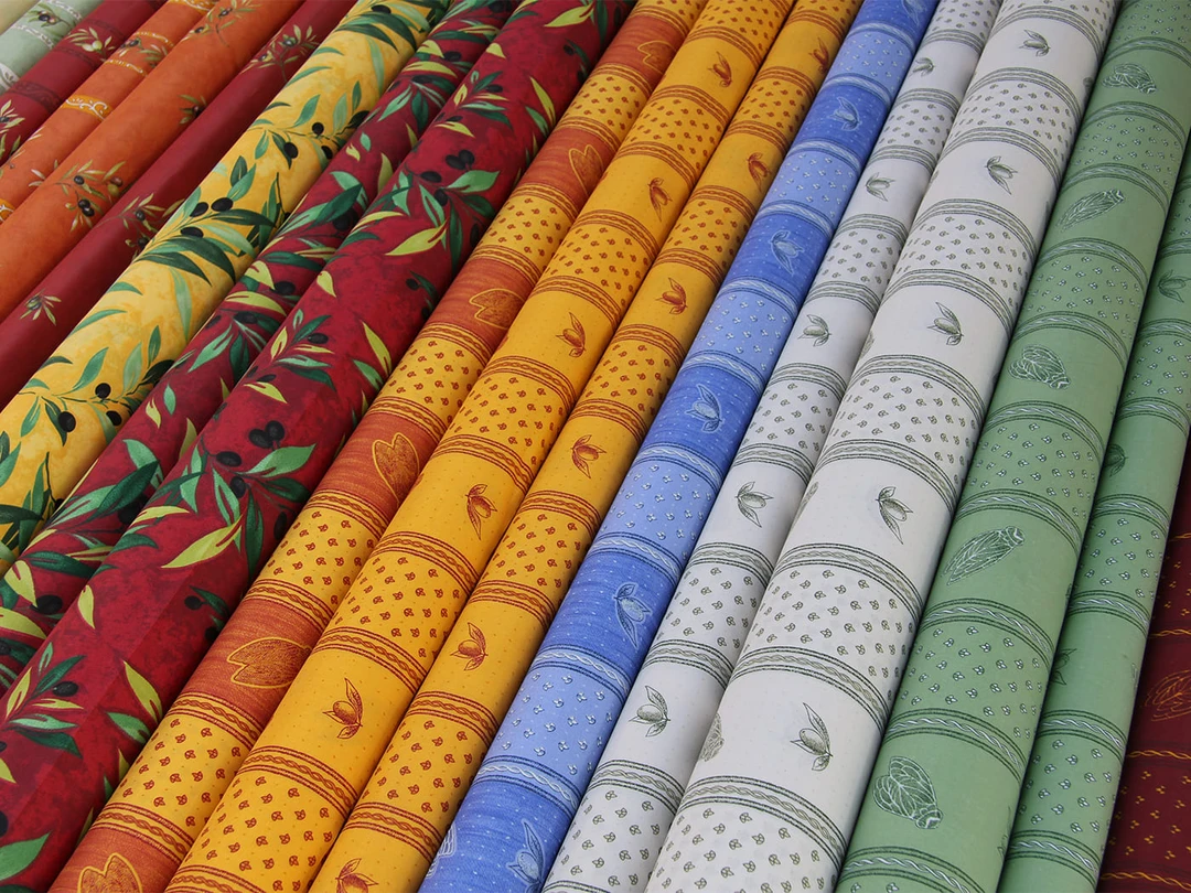 - Провансальский текстиль. Столовые скатерти, салфетки и льняные полотенца с характерными орнаментами могут стать ярким акцентом в домашнем интерьере. Производят их в мастерских в Арле и Авиньоне, а продают в магазинах по всей стране.