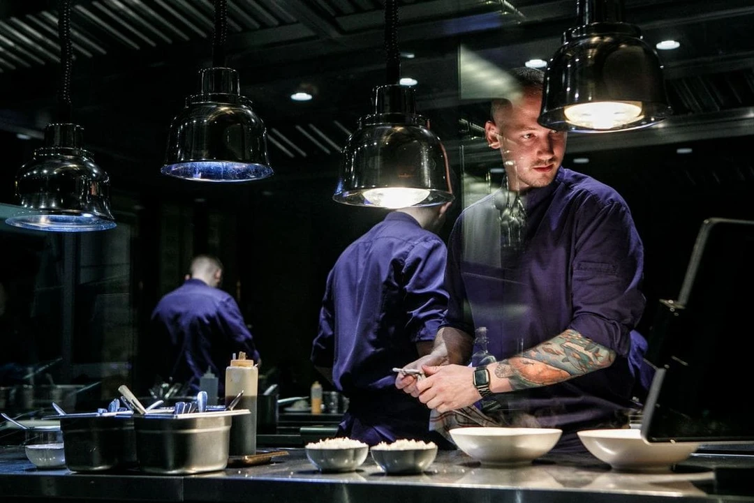 Атмосфера этого ресторана Питера соответствует концепции изысканного меню — пар с открытой кухни, столешницы из чёрного мрамора, золочёные приборы вместо деревянных палочек, приглушённый свет и полотна с похожей на иероглифы каллиграфией петербургского художника Покраса Лампаса. Именно так выглядит место, где исполняют гастрономические желания самураев XXI века.