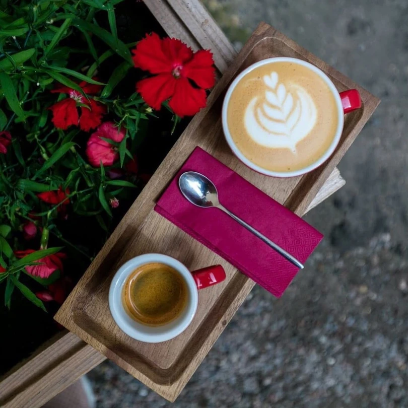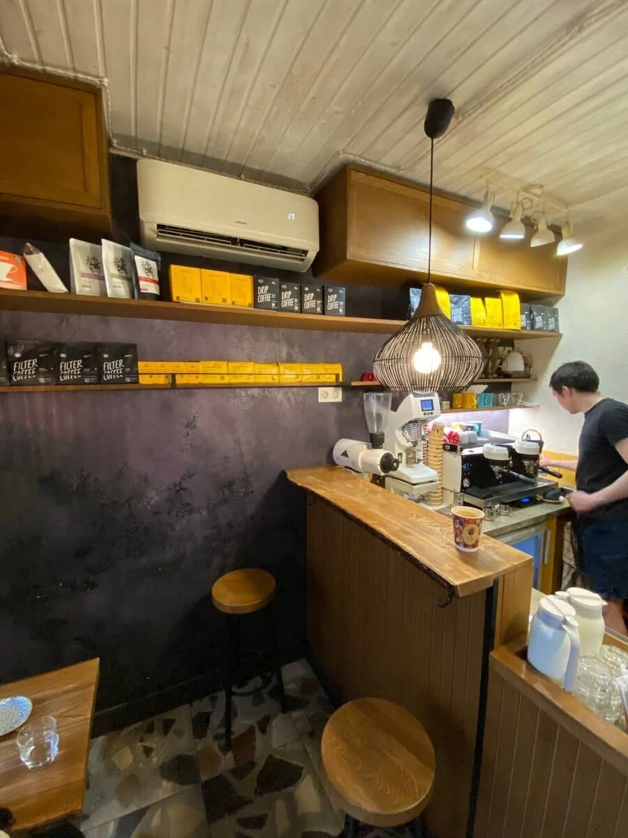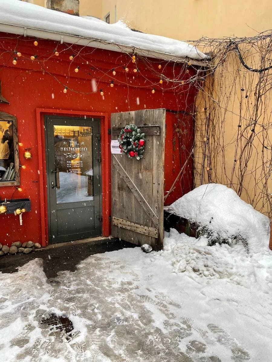 Внутри мало места, поэтому посетители часто размещаются во дворе, где своеобразным столиком служит капот стареньких жигулей. Это идеальное место для фотосессии с чашкой ароматного напитка. Атмосферности добавляют мелкие детали в виде сезонных украшений. Так, весной тут распускаются тюльпаны в кадках, а зимой на входной двери появляются рождественские венки и новогодняя подсветка. В любое время года это настоящий островок уюта в центре каменных джунглей.