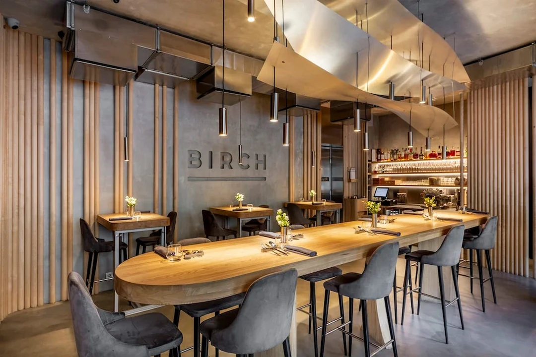 В Birch предлагают выбрать еду не по меню, а сетами. Авторский включает более десяти так называемых курсов, которые продолжаются два‑три часа. Главным гастрономическим впечатлением гурманы называют жидкий плов, а также хвалят икорный амюз‑буш (в переводе с французского — мини‑закуска, разжигающая аппетит) и пирог из лангустина. Классический сет состоит из хитов прошлых лет, например, вешенок BBQ и гаспачо из пробирки, а также уже легендарного свекольного сорбета в виде губной помады.