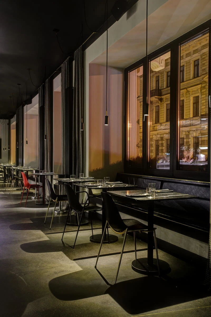 Сдержанный интерьер призван концентрировать внимание гостей на еде и её подаче. Уникальную концепцию каждого блюда дополняет дизайнерская посуда, а сомелье ресторана способны подобрать вино даже к десерту. Абсолютные хиты здесь объединяют в сезонные сеты, которые обновляют раз в полгода.