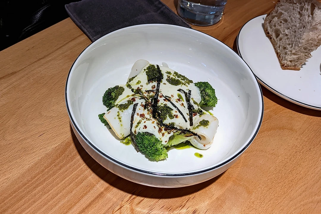 С лаконичным меню идеально гармонирует интерьер в минималистском стиле. Приглушённый свет, спокойные цвета, обилие дерева и металла, кажется, призвано сфокусировать внимание гостей не на антураже, а на еде, ради которой сюда и стоит попасть.