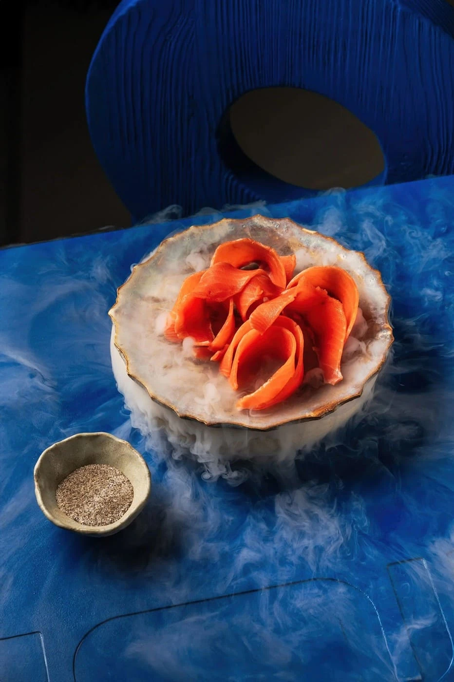 Также в ресторане подают форшмак из байкальского омуля с икрой, тартар с копчёным угрём, карпаччо из гребешков, салат «Мимоза» с неркой и муссом из лосося. Есть и совершенно неожиданные комбинации: оливье с опалённой форелью, винегрет с тугунком и долма с осетриной.