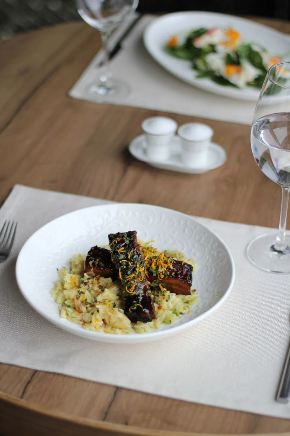 - Вырезка слуцкого оленя с маринованной печёной тыквой и соусом из брестской горгонзолы