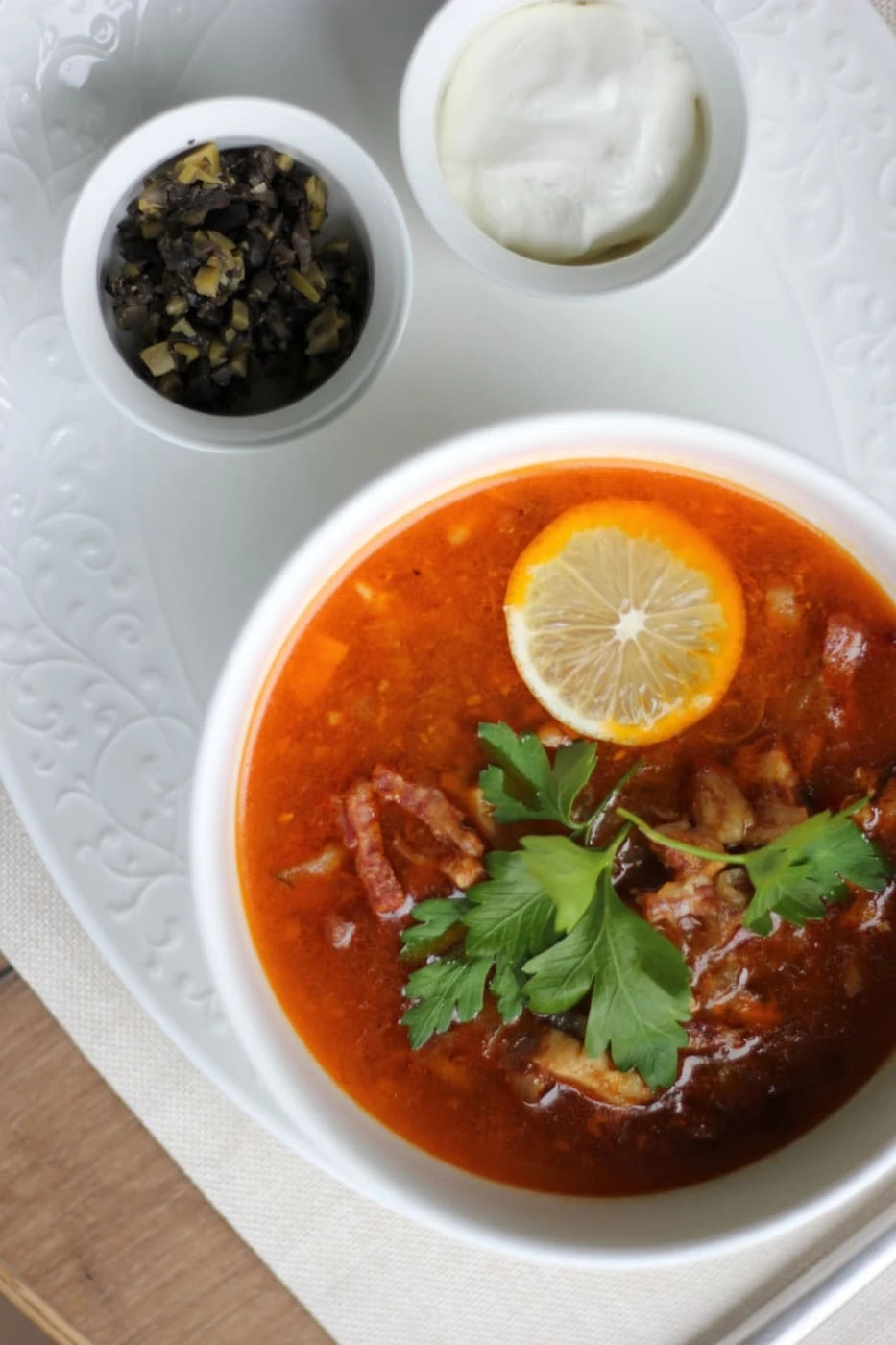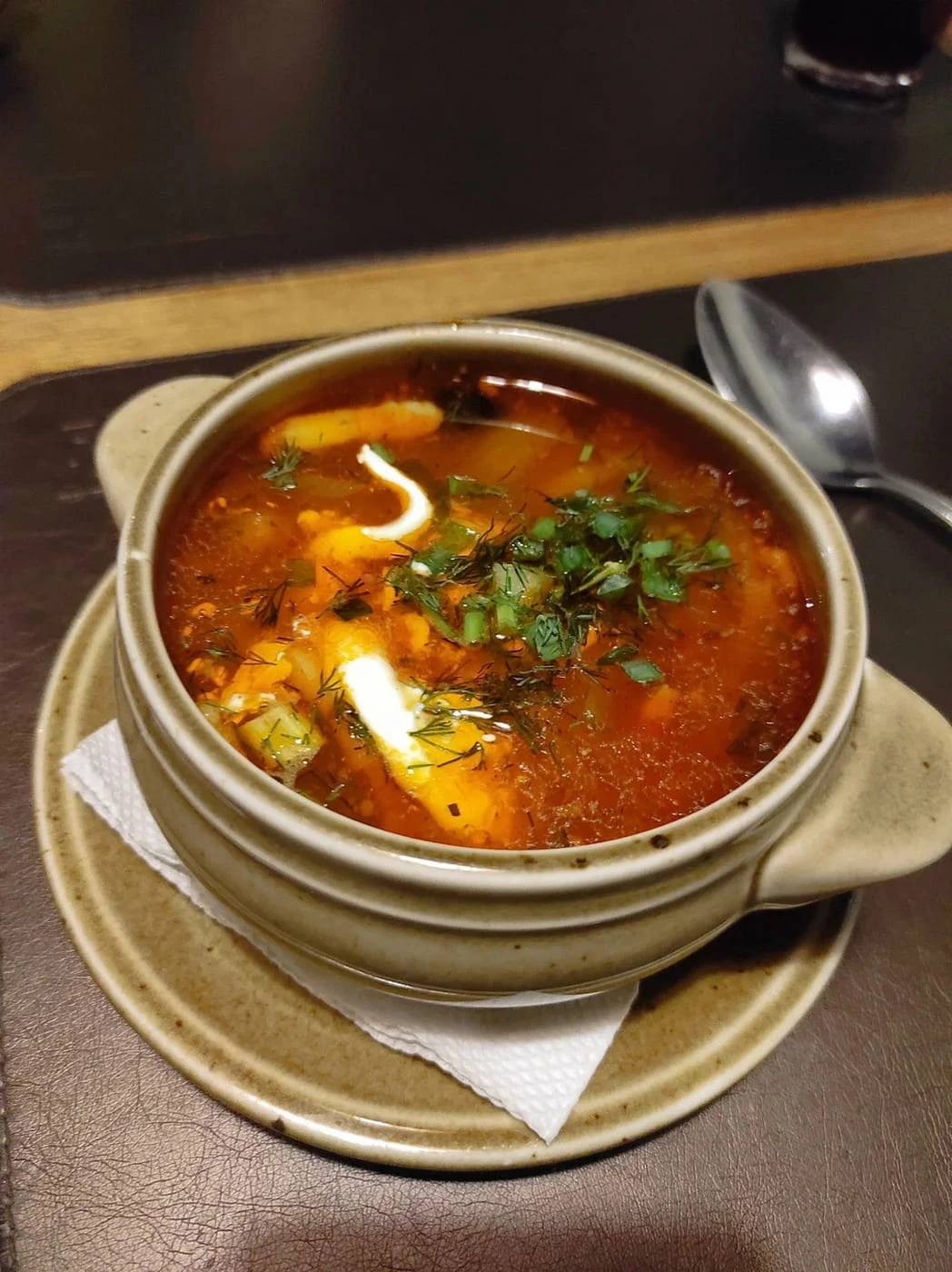 - Фляки — наваристый суп из говяжьего рубца с луком, морковью, сельдереем, мукой и чесноком