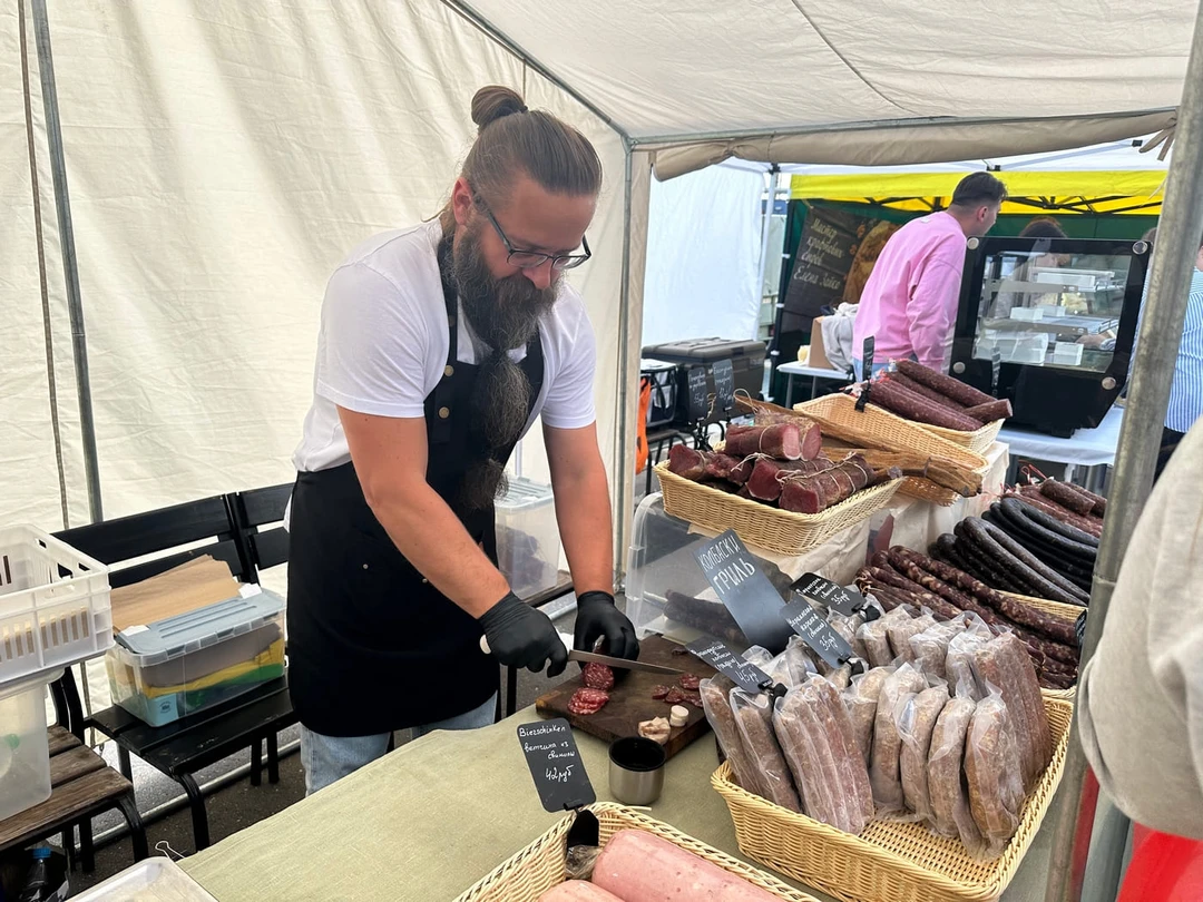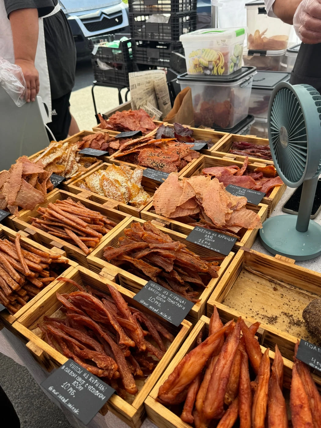 - Прогуляйтесь по фермерскому рынку «ЎсёСваё» и закупитесь продуктами местных хозяйств. Здесь продают крафтовые сыры, хлеб на закваске, колбасы, копчёное сало, рыбу из белорусских озёр, сыродавленное масло и многое другое