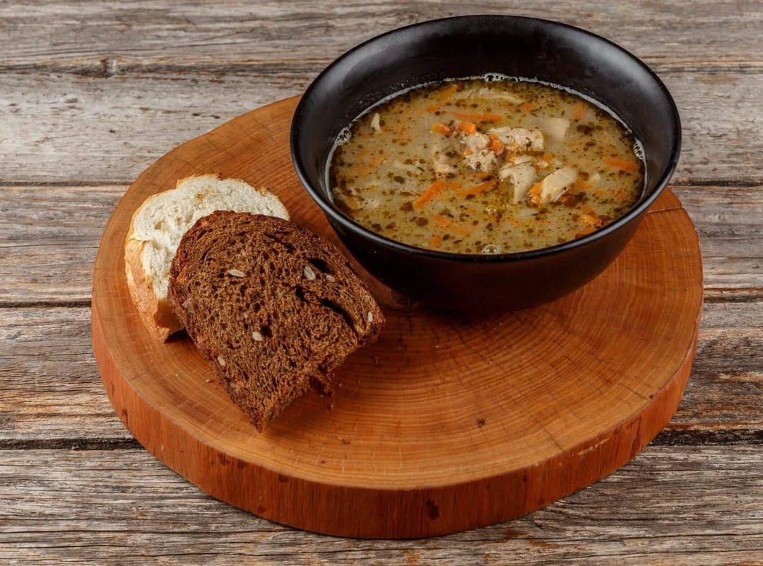 - Крупник — суп из перловки на овощном бульоне с белыми грибами