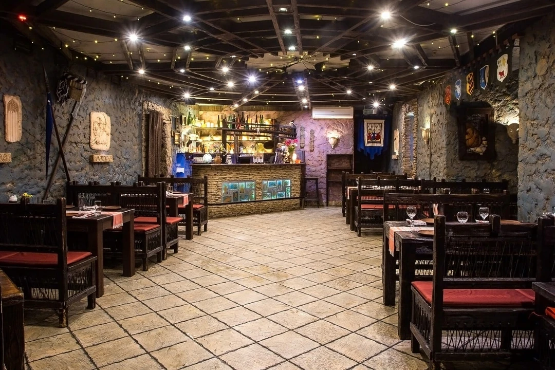 Интерьеры этого ресторана стилизованы под средневековый замок времён Великого княжества Литовского. В зале — витражные окна, массивная мебель из тёмного дерева, камин, рыцарские латы, глиняная посуда, рушники. Кухня поддерживает историческую концепцию: здесь подают наваристые супы и сытные мясные блюда, которые вполне могли бы стоять на столах шляхтичей несколько веков назад.