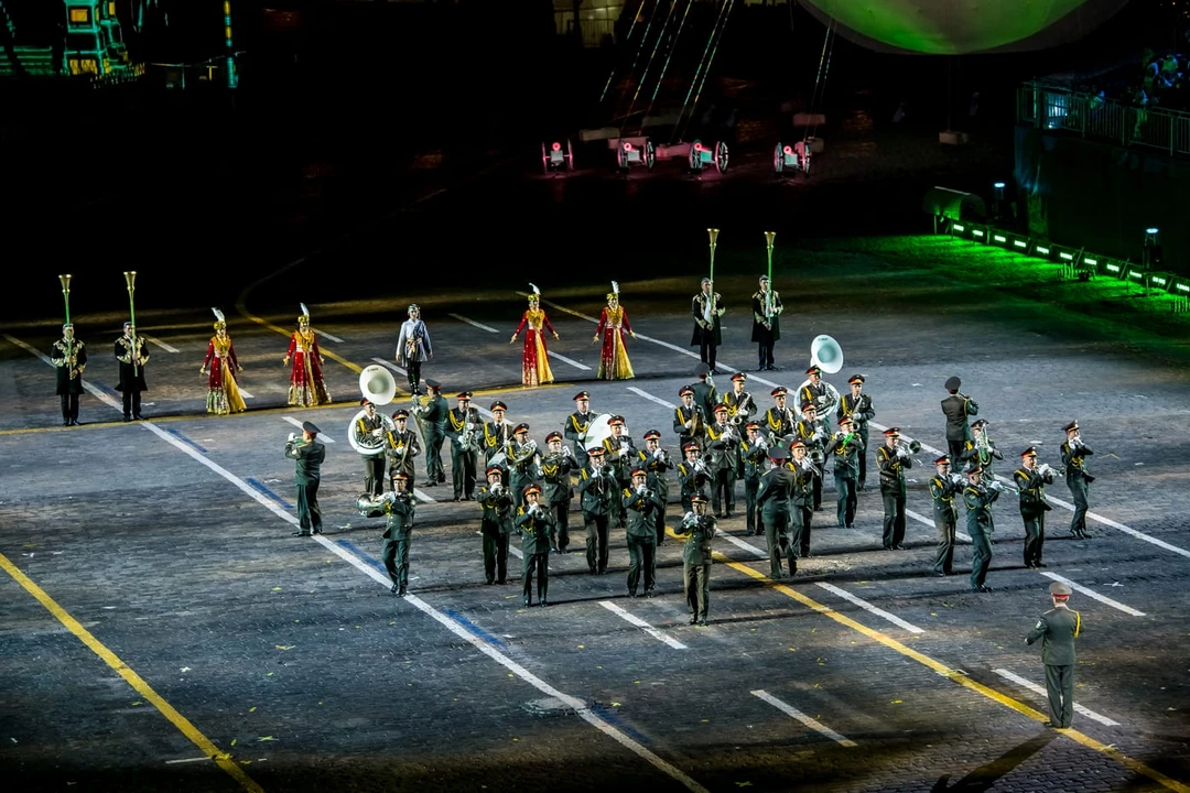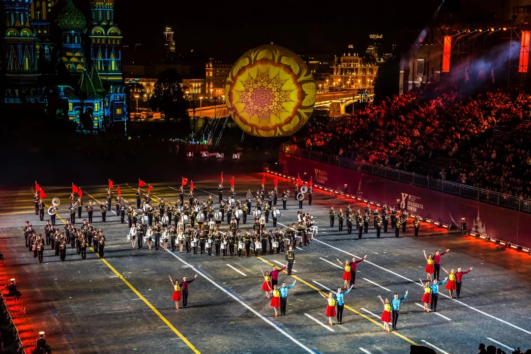 Этот зрелищный международный военно‑музыкальный фестиваль радует москвичей и гостей с 2007 года, а «сражение» оркестров армий разных стран традиционно проходит на фоне стен Кремля. Коллективы исполняют военную и классическую музыку, народные и эстрадные песни. Их выступления дополняют танцевальные номера, парадные марши и лазерные шоу.