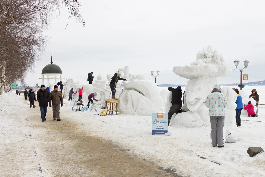 На окраине Петрозаводска есть лыжная трасса «Фонтаны» протяжённостью более 11 километров. У её начала можно взять лыжи напрокат. Маршрут проложен по одноимённому парку, где в 1950-1960‑х годах геологи пробурили скважины в надежде найти полезные ископаемые. Из двух забила вода, а когда наступила зима, фонтаны превратились в причудливые ледяные скульптуры. Каждый год они приобретают разную форму и уже стали местными достопримечательностями.
