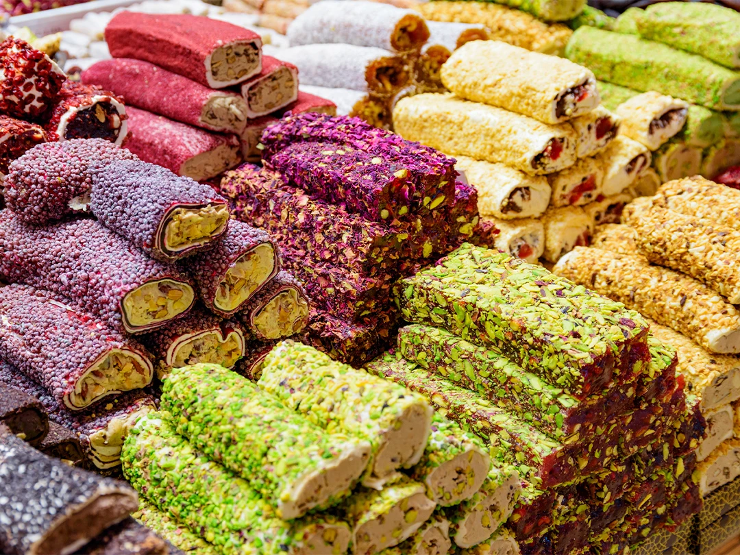 Один из самых популярных локальных десертов к чаю — кюнефе. Эту невероятно фотогеничную сладость из турецкого (кадаифского) теста и несолёного козьего сыра томят в медовом сиропе, а потом посыпают измельчёнными фисташками.