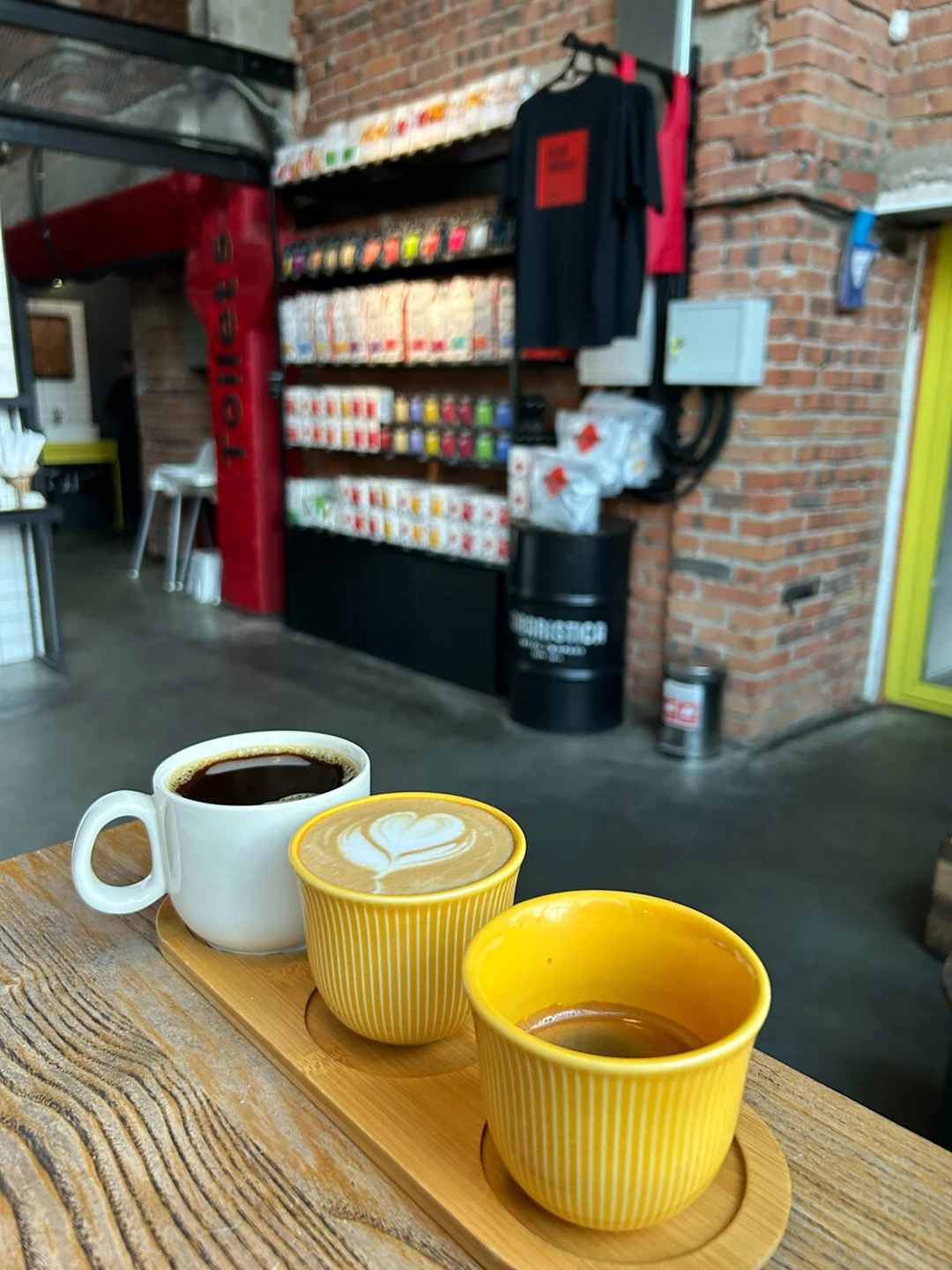 Здесь царит атмосфера дальних странствий. Табличка над стойкой заказов ежедневно сообщает информацию о кофе, который готовят именно сегодня: его сорт и страну происхождения. Под напиток предлагают выбрать одну из чашек, которые владельцы привозят из путешествий. В меню также есть врапы с беконом или курицей (это разновидность буррито) и несколько видов десертов — например, брауни и чизкейк.