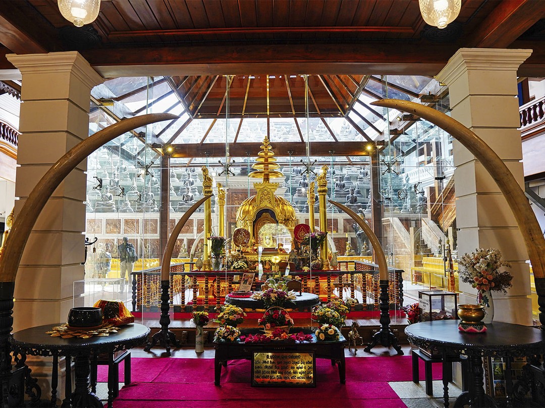 Экспозиция музея охватывает разные эпохи истории Шри‑Ланки. Здесь можно найти древние статуи Будды, королевские регалии, ритуальные предметы и редкие рукописи на пальмовых листьях. Среди самых известных экспонатов — трон и корона последнего правителя королевства Канди. Это государство существовало в центральной части острова и долгое время оставалось независимым от европейских колонизаторов. Правитель Канди был последним монархом Шри‑Ланки до перехода острова под полный британский контроль.